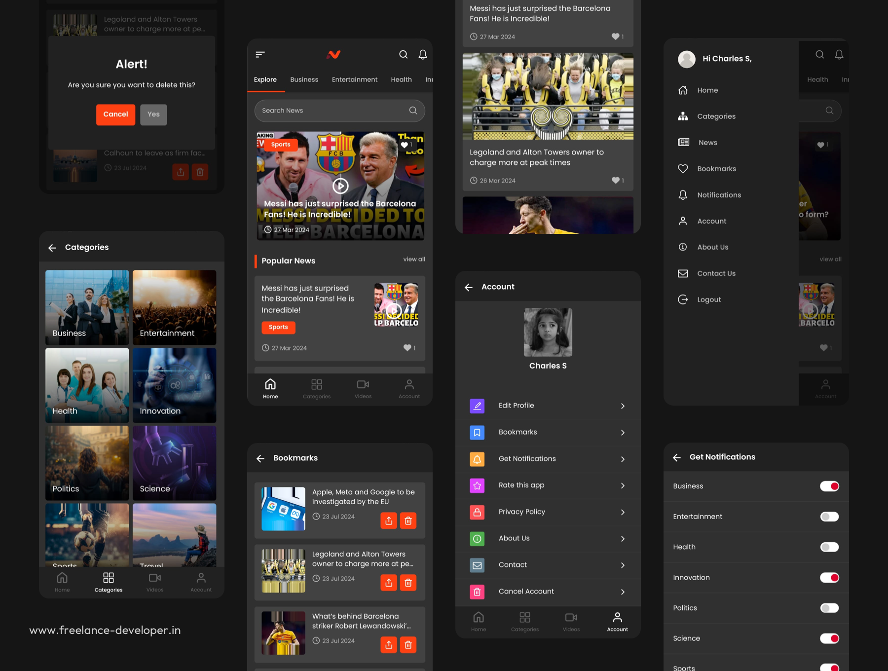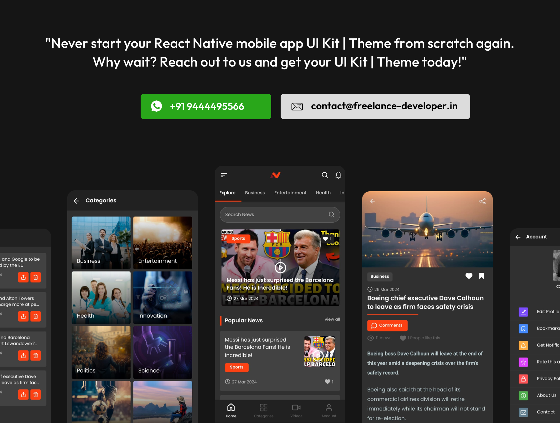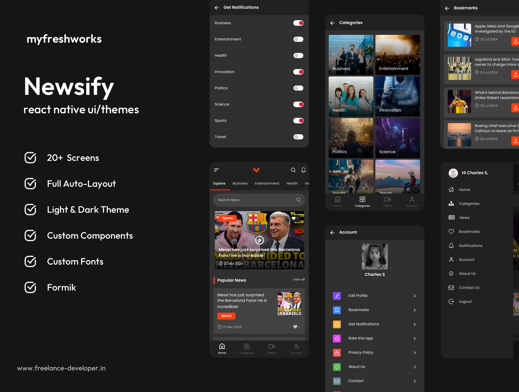 Newsify React Native Mobile App UI Kit - Themes for News Portals
