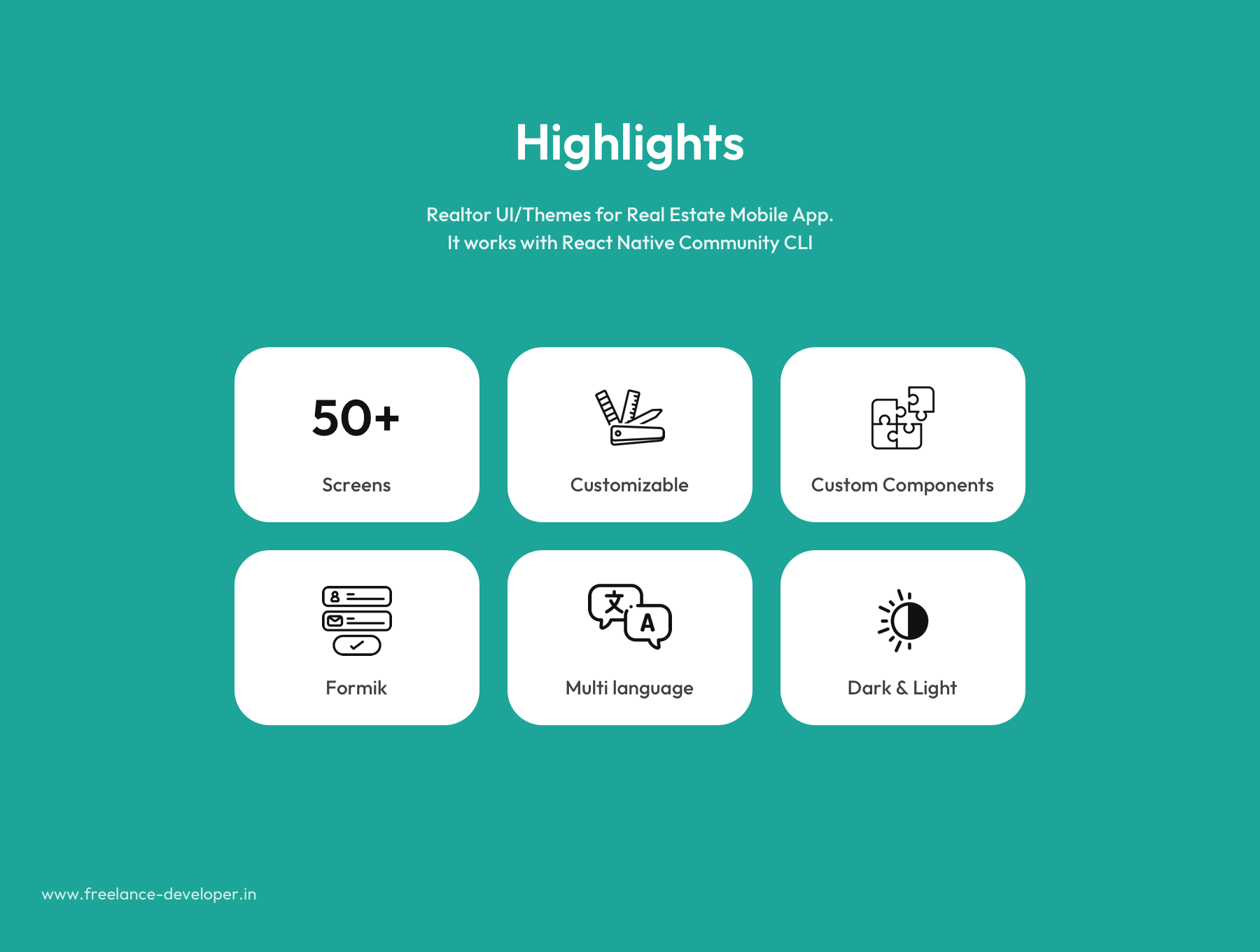 "React Native Real Estate Mobile App UI Kit and Themes offer customizable components, advanced search, interactive maps, and secure user authentication. Build beautiful, functional real estate apps effortlessly."